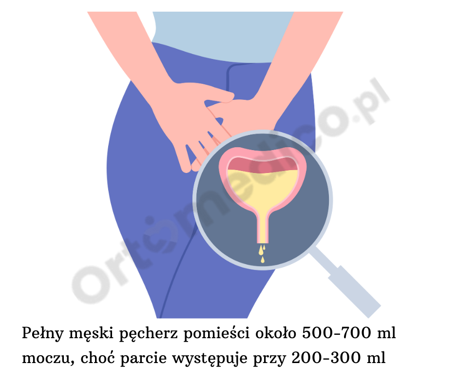 - Pełny pęcherz pomieści około 500-700 ml moczu, choć parcie występuje przy 200-300 ml (Zawyczaj tyle jest wydalane jednorazowo przy uczuciu pełnego pęcherza)