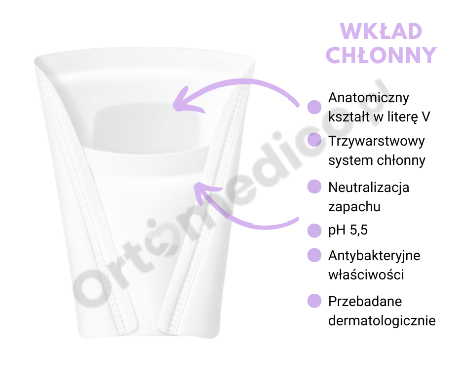 • Centralna warstwa chłonna została stworzona z myślą o kropelkowym nietrzymaniu moczu, efektywnie pochłaniając niewielkie ilości wilgoci.