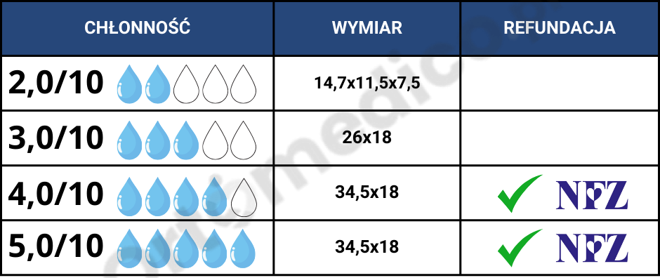 Od 1 stycznia 2024 roku zostanie zwiększona wysokość refundacji na wyroby chłonne. Dotychczas refundacja wynosiła 70% z limitu finansowania. Od nowego roku refundacja zostanie zwiększona oraz podzielona na dwie grupy osób: 80% refundacji w przypadku osób dorosłych oraz 90% w przypadku dzieci do 18 roku życia. Limity finansowania pozostają bez zmian.