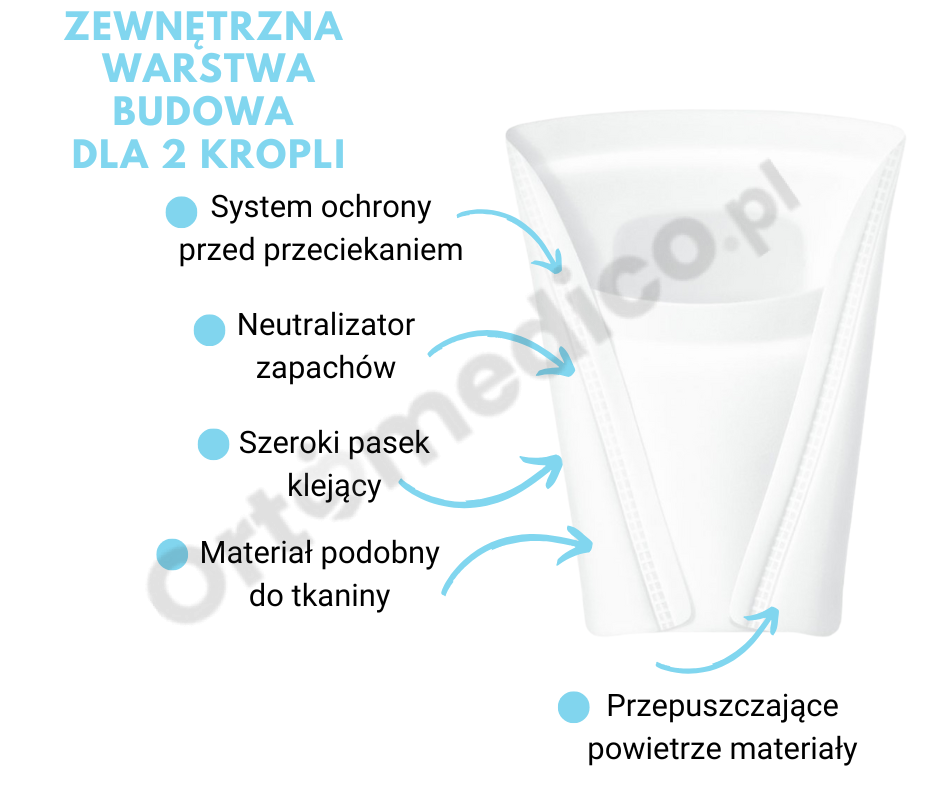 - Chłonność idealnie dostosowana do kropelkowego nietrzymania moczu.