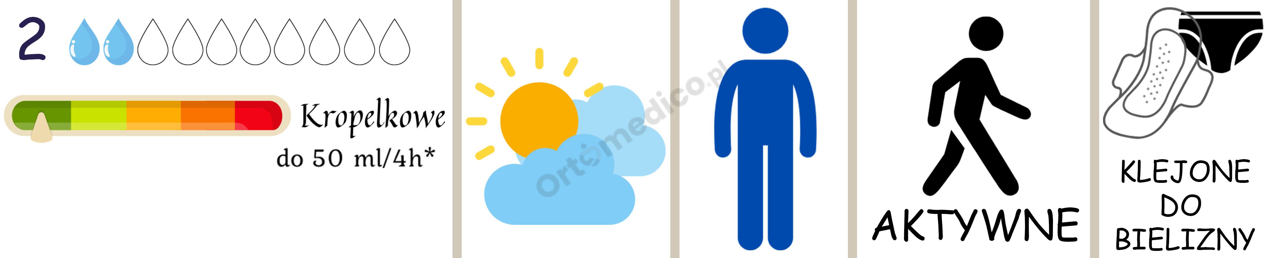 - Poziom chłonności 2.0 krople został opracowany specjalnie dla mężczyzn z lekkim, kropelkowym nietrzymaniem moczu.