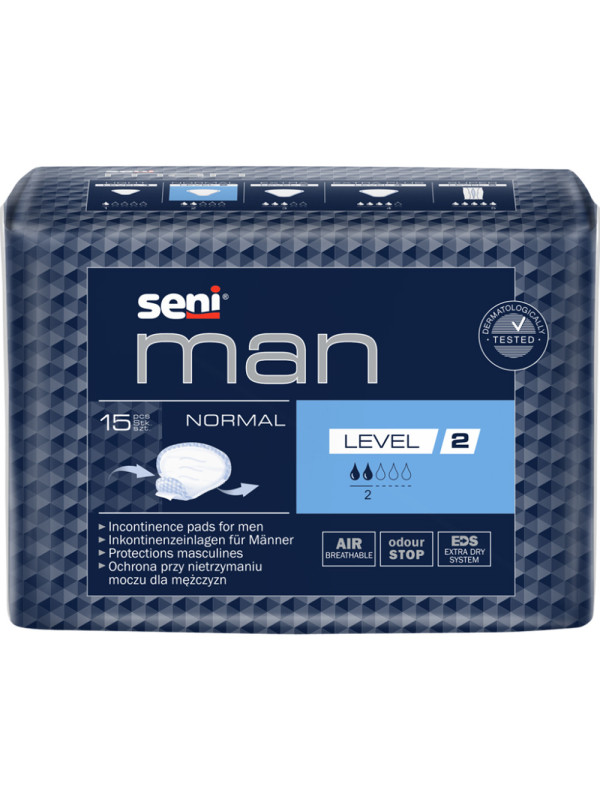 Wkładki chłonne Seni Man Normal Level 2 to idealne rozwiązanie dla mężczyzn, którzy cenią sobie komfort i dyskrecję. Z tymi wkładkami dla mężczyzn można zrezygnować z tradycyjnych pieluchomajtek lub majtki chłonne, ciesząc się większą swobodą.
