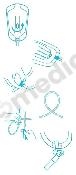 - Zdezynfekuj końcówkę odprowadzającą worka gazikiem nasączonym środkiem antyseptycznym, możesz użyć także sprayu i chusteczki