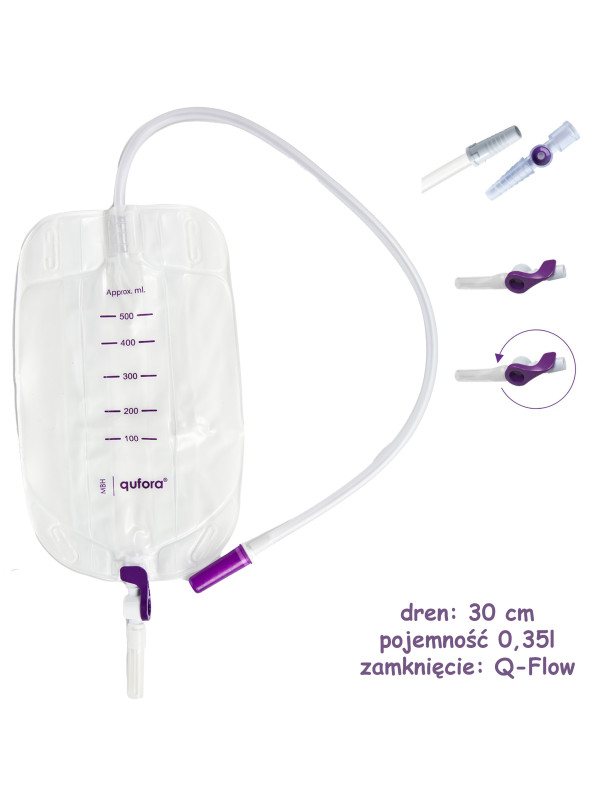 Worek QUFORA® 11061901 do Zbiórki Moczu 350 ml Mocowany na Nogę - Komfort i Bezpieczeństwo dla Pacjentów z Cewnikiem lub Urostomią
