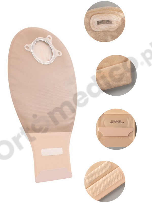 Łączenie płytki i worka możliwe jest dzięki niskoprofilowanemu pierścieniowi zapinanemu na zatrzask. Zaletą jest to, że płytka może nawet przez kilka dni być przyklejona do skóry, a codziennej wymianie należy poddać tylko worek stomijny.