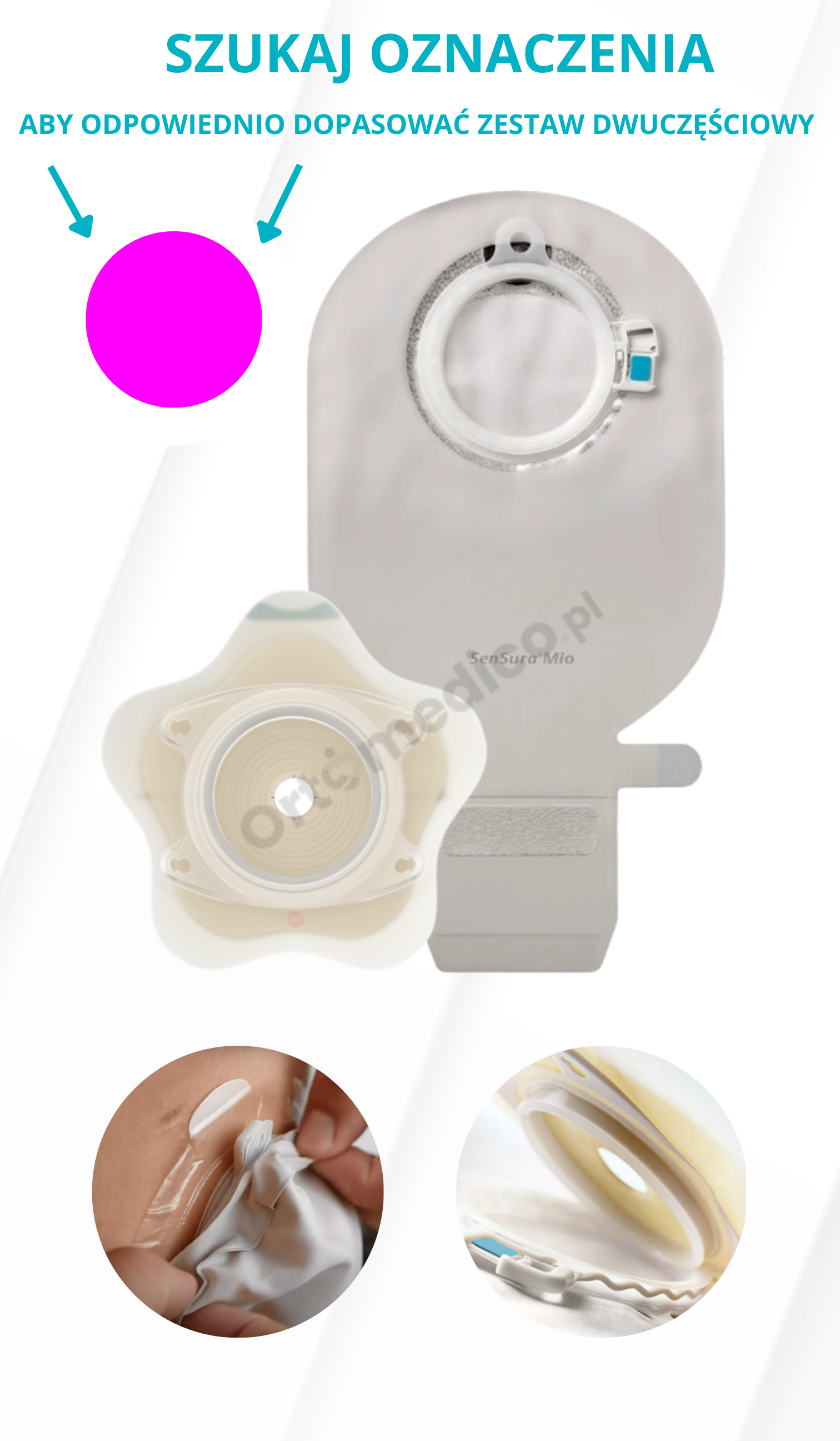 Worek stomijny SenSura Mio Click działa wyłącznie z dedykowaną płytką (sprzedawaną osobno). Aby właściwie dobrać komponenty: