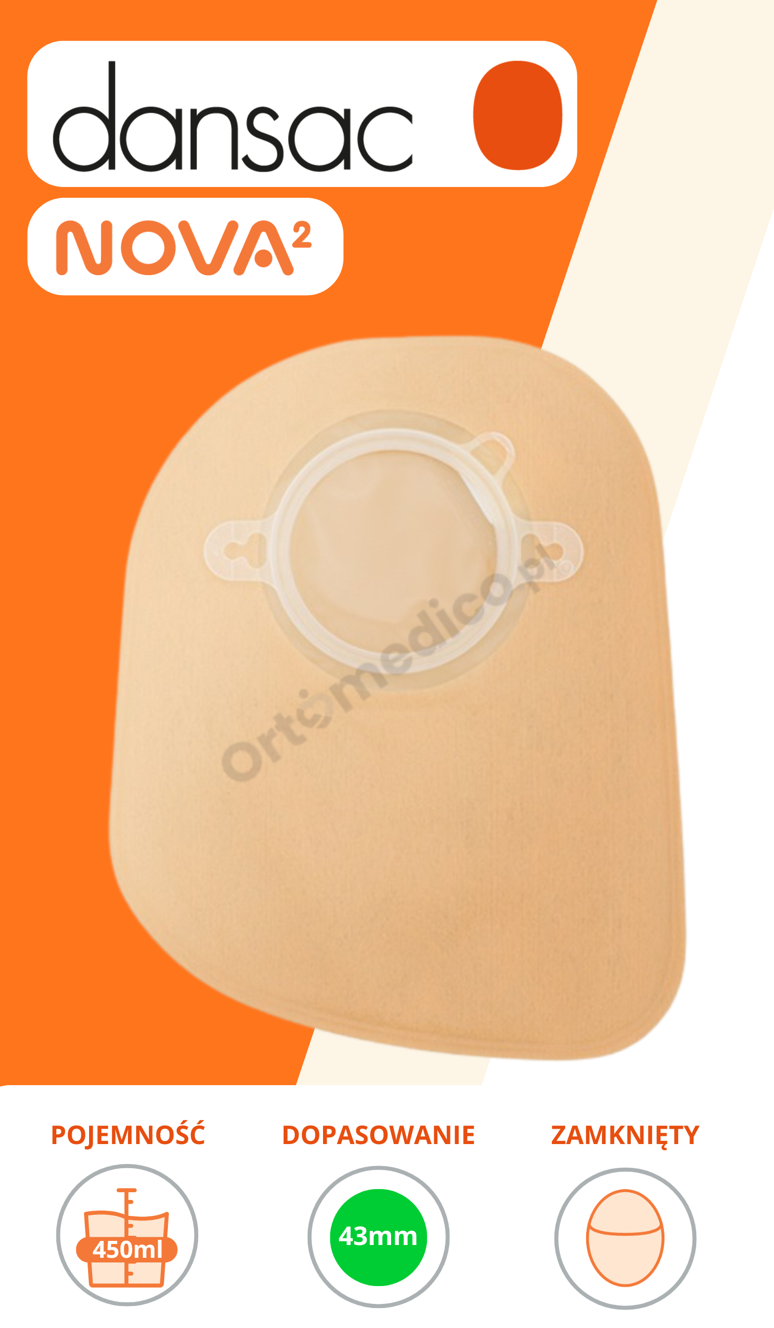 Worek stomijny zamknięty Nova™ 2 to element dwuczęściowego systemu stomijnego marki Dansac, przeznaczony dla osób z kolostomią. Został zaprojektowany z myślą o osobach aktywnych, poszukujących dyskretnego, szczelnego i łatwego w obsłudze rozwiązania, które zapewnia maksymalne bezpieczeństwo w każdej sytuacji – w pracy, w domu, w podróży.