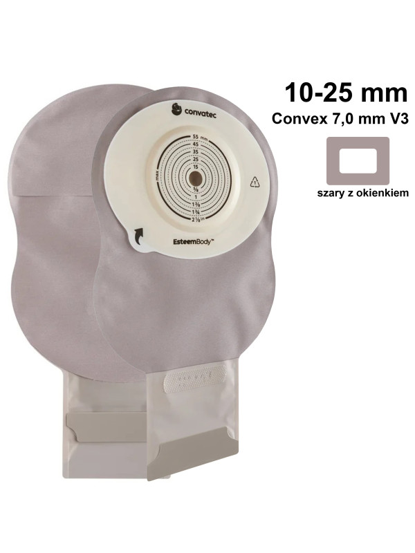 423627 Worek Ileo Jednoczęściowy Esteem Body Szary z Okienkiem Otwarty 10-25 mm 410 ml Convex 7,0 mm V3 Convatec