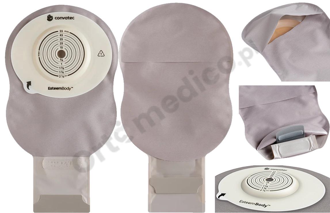 - Zaawansowana technologia Leak Defense™: Esteem Body™ oferuje wyjątkowe zabezpieczenie przed przeciekami dzięki połączeniu najlepszych klejów ConvaTec: Durahesive® i Modified Stomahesive®. Każdy z nich jest dopasowany do różnych typów wydzielin, co zapewnia dłuższy czas noszenia oraz skuteczniejsze uszczelnienie.