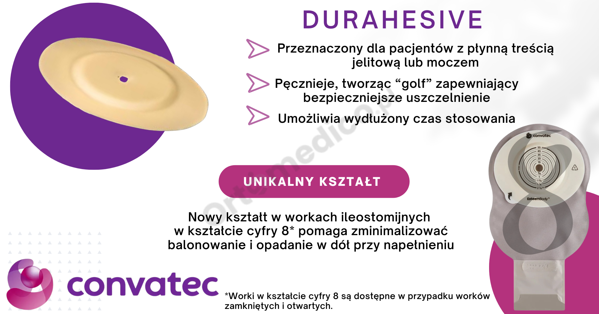 • Minimalizowanie podrażnień: Elastyczny przylepiec z hydrokoloidu Durahesive® chroni skórę przed otarciami i reakcjami alergicznymi, co jest szczególnie ważne przy długotrwałym noszeniu worka.