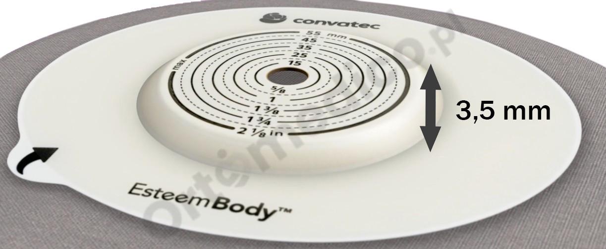 • Delikatne dopasowanie: Głębokość 3,5 mm to łagodna wypukłość, która zapewnia komfortowe, niemal niewyczuwalne dopasowanie do skóry wokół stomii, jednocześnie tworząc skuteczną barierę ochronną.