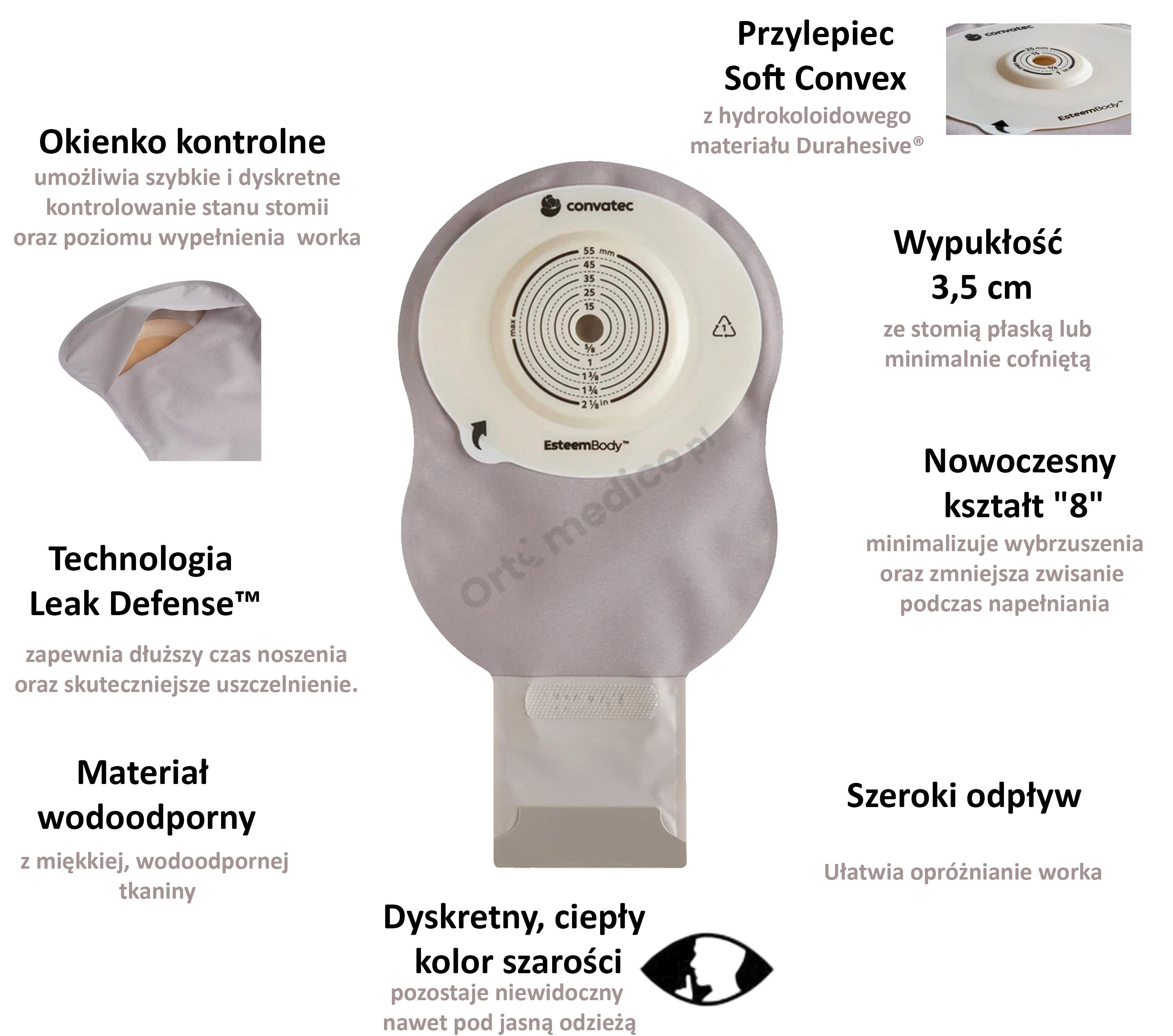 Poznaj najnowszy, jednoczęściowy, miękki system stomijny Esteem Body™ Soft Convex 423609 – produkt stworzony z myślą o pacjentach z wklęsłą lub płaską stomią, którzy pragną połączenia najwyższego komfortu, bezpieczeństwa oraz dyskrecji. To innowacyjne rozwiązanie, opracowane przez firmę ConvaTec, wyznacza nowe standardy w opiece stomijnej, łącząc zaawansowaną technologię Leak Defense™ z unikalnymi właściwościami materiałów, dzięki którym użytkownicy mogą cieszyć się większą swobodą i pewnością siebie każdego dnia.