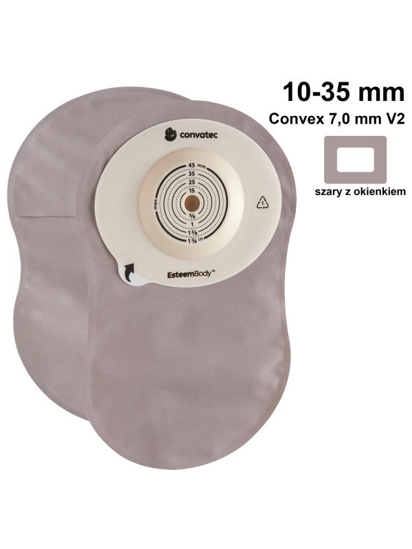 423674 Worek Stomijny Jednoczęściowy Esteem Body Zamknięty 10-35 mm Szary z Okienkiem Convex 7,0 mm 410 ml V2