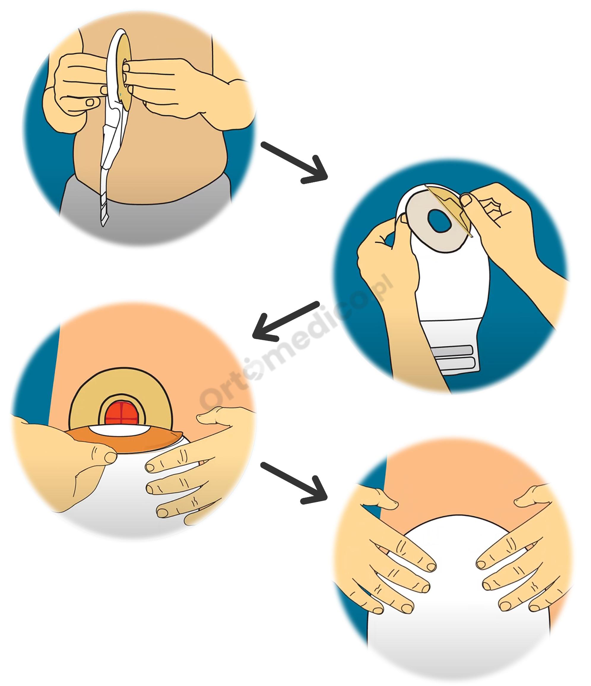 Podczas zakładania sprzętu stomijnego należy zwracać szczególną uwagę, by przylepiec dobrze przylegał do skóry, otwór nie był zbyt duży czy zbyt mały.