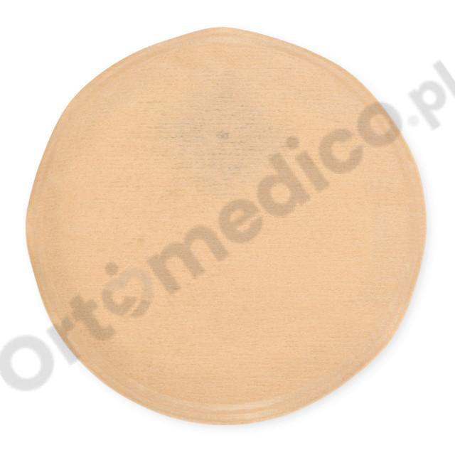 Płaska płytka hydrokoloidowa o średnicy 95 mm – elastyczna i przyjazna dla skóry, dopasowuje się do kształtu ciała.