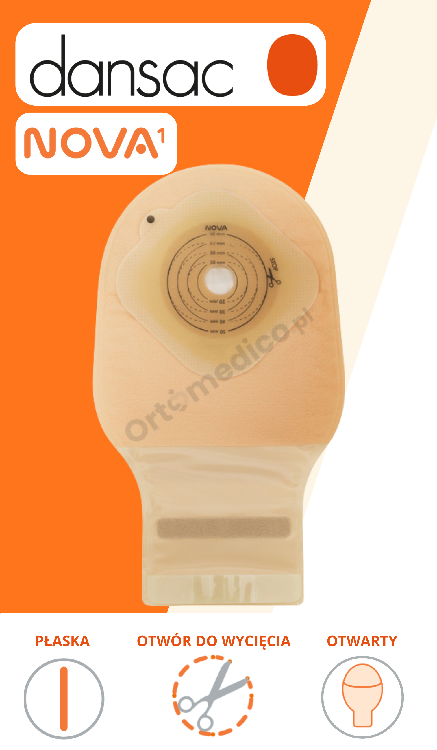 Dansac Nova1 FoldUp 825-15 – worek stomijny z możliwością docięcia (15–50 mm)