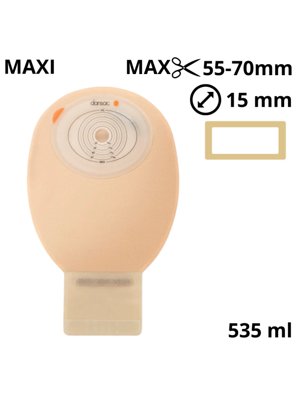 Worek stomijny Dansac NovaLife 3017-15 TRE™ 55/70 mm – otwarty, beżowy z okienkiem, z płaską płytką