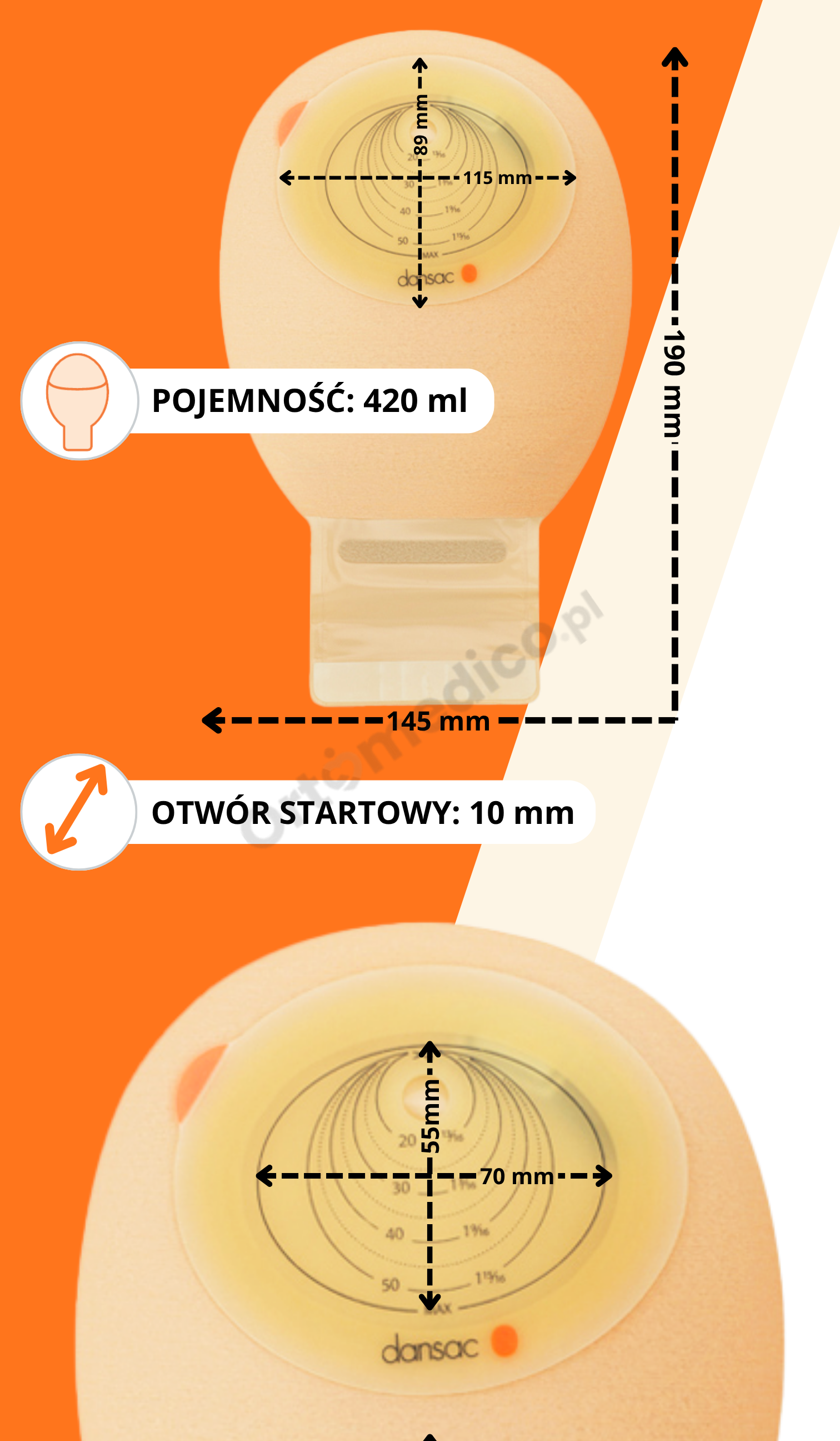 9242-10 Worek stomijny otwarty Dansac NovaLife1 Midi przeźroczysty 10–55/70 mm 420 ml – jednoczęściowy