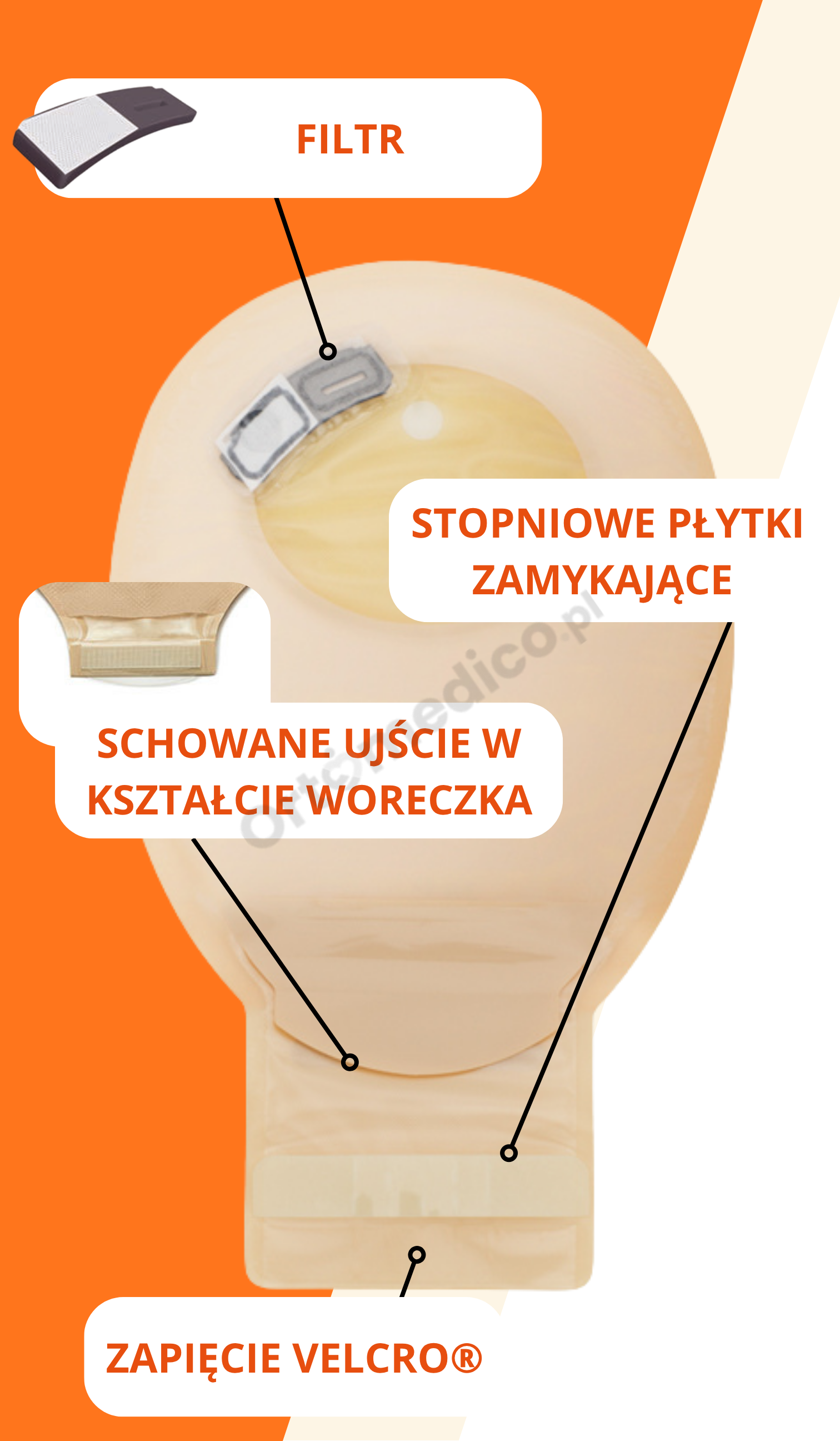 - minimalizuje ryzyko garbienia się worka powyżej stomii.