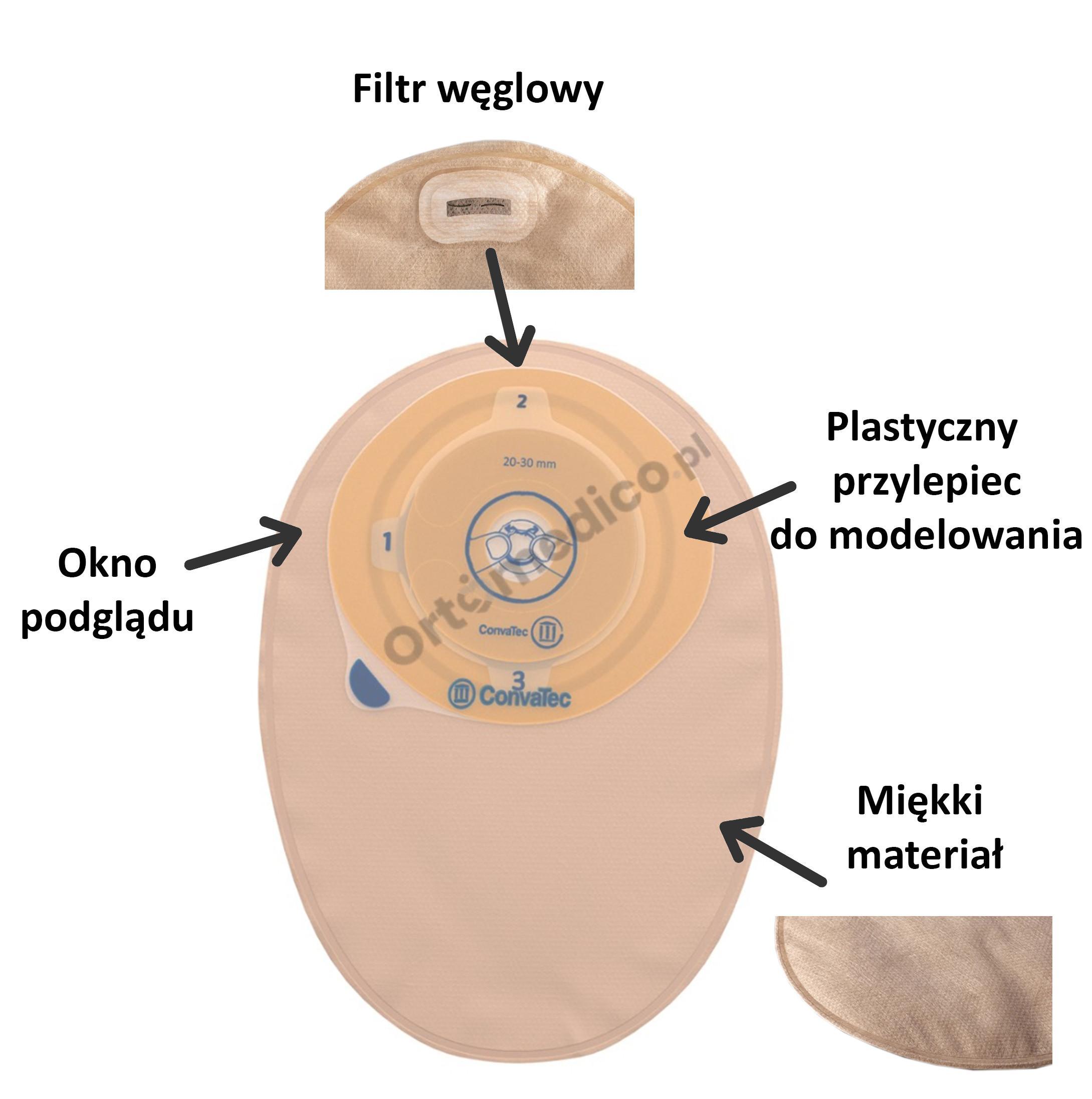 - umożliwia okno podglądu zawartości worka i kontrolę stomii