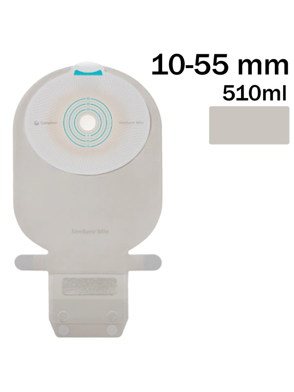 104560 Worek Jednoczęściowy Sensura Mio MAXI 510 ml, 10-55mm Otwarty Naturalny Szary Coloplast