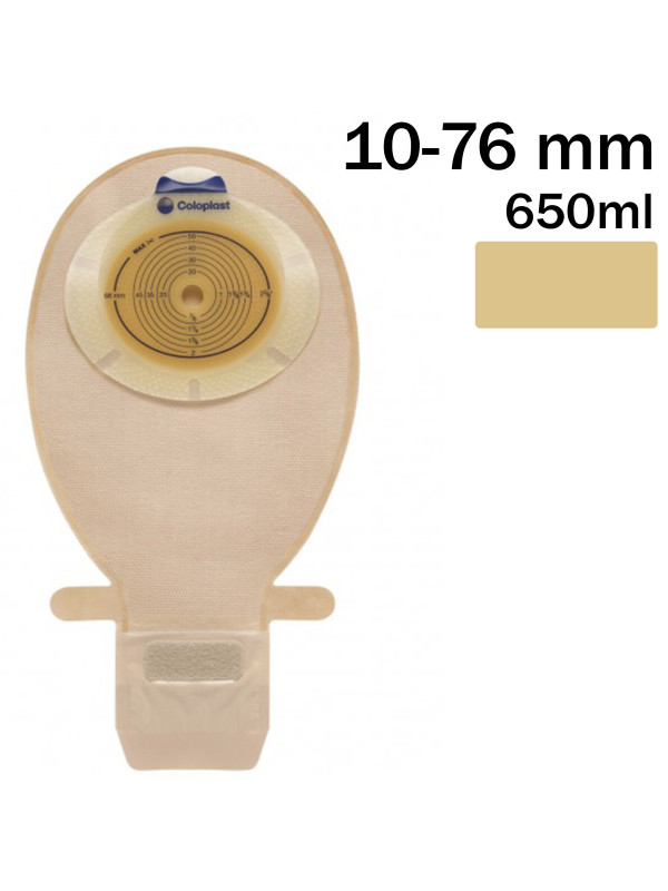 155800 Worek Koloostomijny Jednoczęściowy SenSura 10-76mm 650 ml Hide-away Otwarty Cielisty Coloplast
