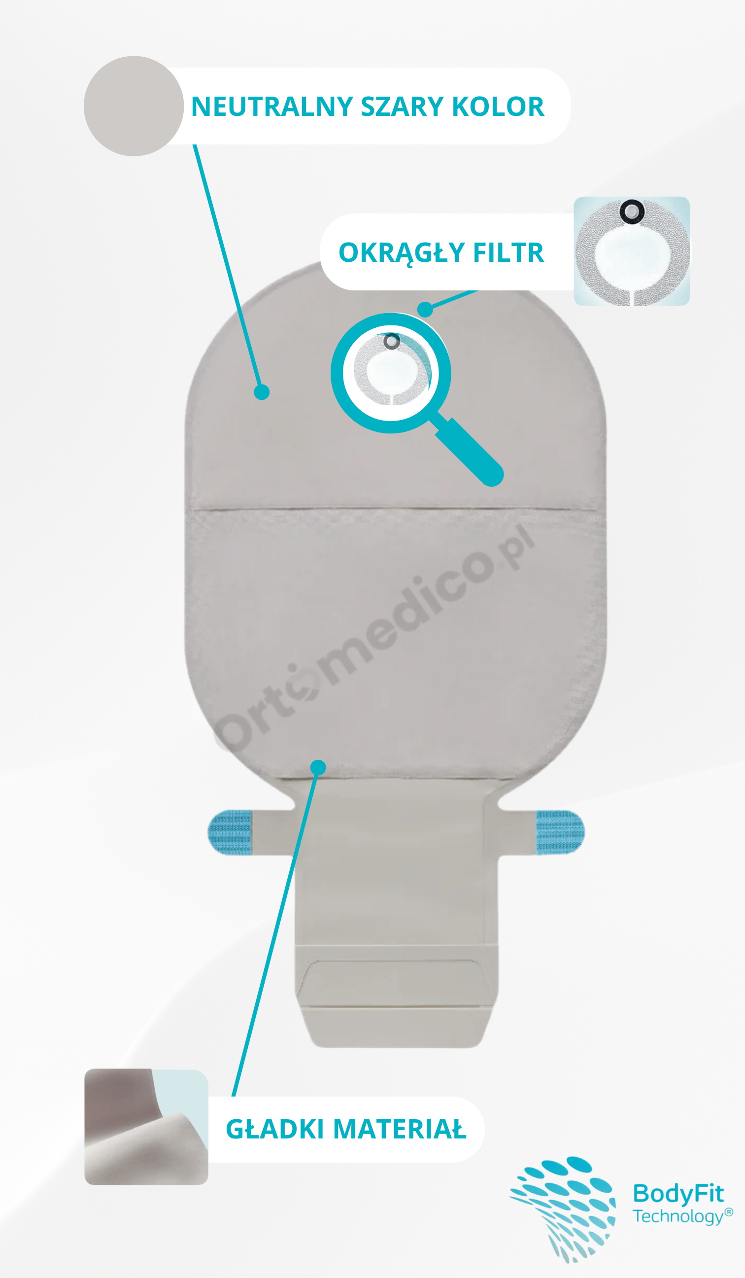 • neutralnym wyglądem, który gwarantuje pełną dyskrecję – worek nie odznacza się pod ubraniem,