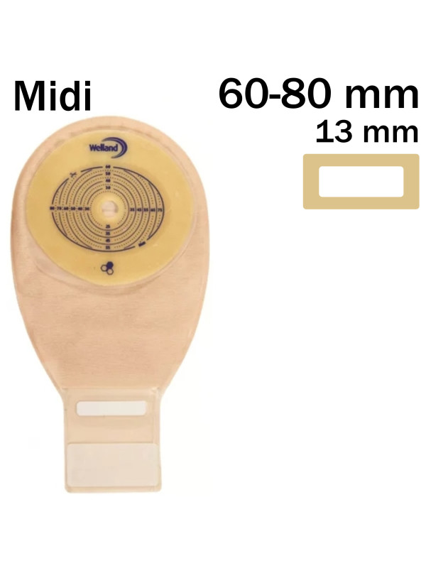 XMHDM513 Worek Jednoczęściowy Otwarty Aurum Drainable 13/60-80mm Midi Welland Z Miodem Manuka Beż z Okienkiem