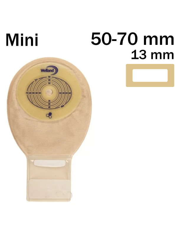 XMHDS513 Worek Jednoczęściowy Aurum Drainable 13/50-70mm 210 ml Mini Welland Z Miodem Manuka Beż z Okienkiem Otwarty