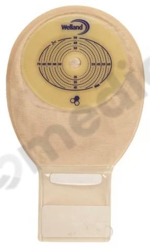 • Otwór (Odpływ): Worek posiada otwór służący do opróżniania go z treści jelitowej, bez konieczności odklejania worka od skóry. To ułatwia higieniczne i skuteczne zarządzanie treścią stomijną.