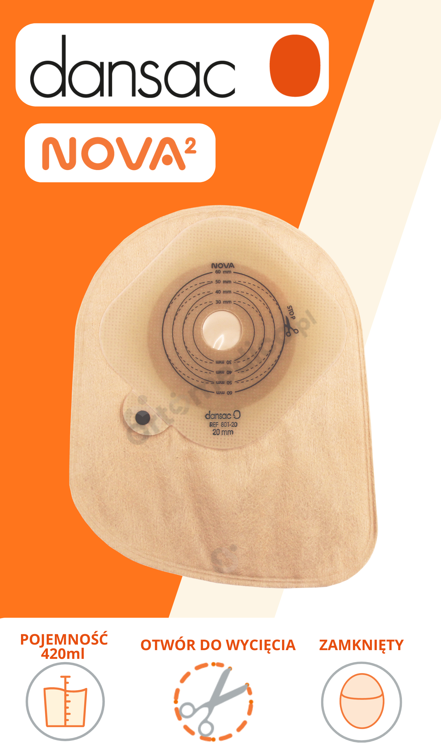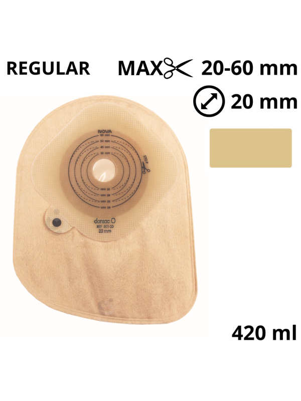 801-20 Worek stomijny Nova1 Closed Midi 20–60 mm, 420 ml – system jednoczęściowy, beżowy Dansac