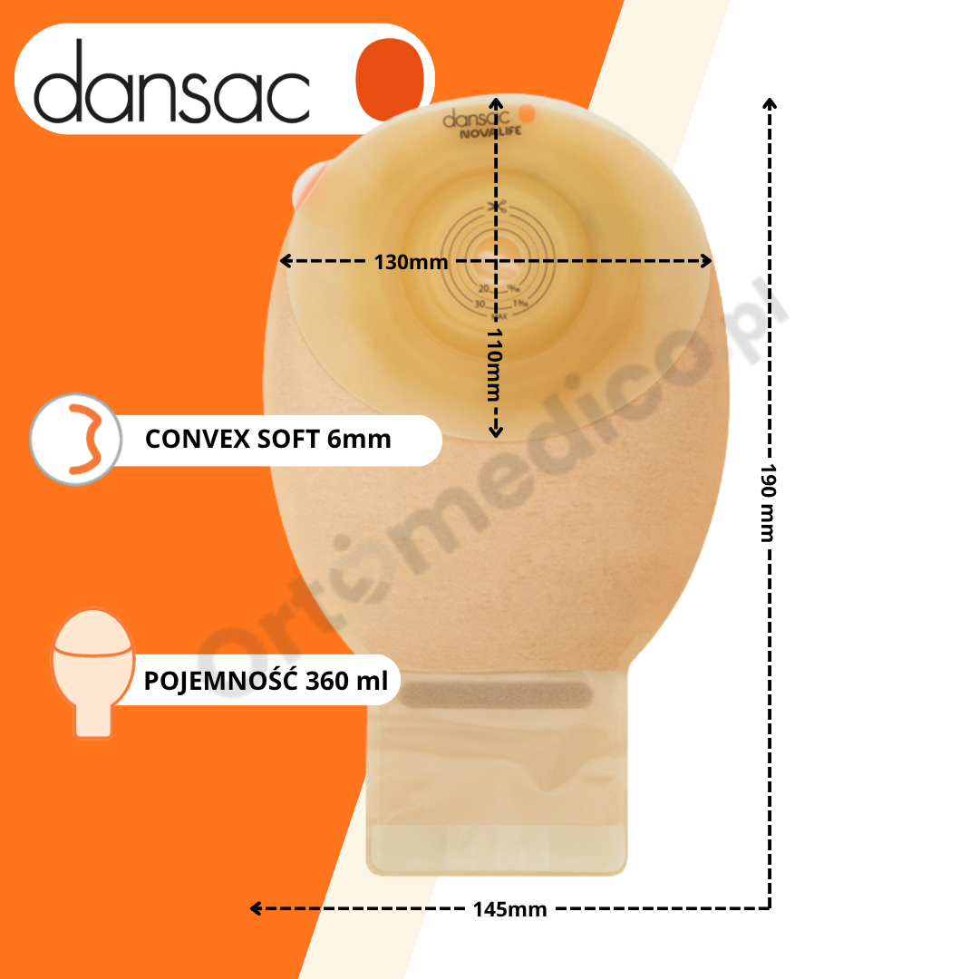 NovaLife™ 1 Open Soft Convex – worek stomijny z miękką wypukłością i okienkiem, 15–34 mm, 360 ml Dansac