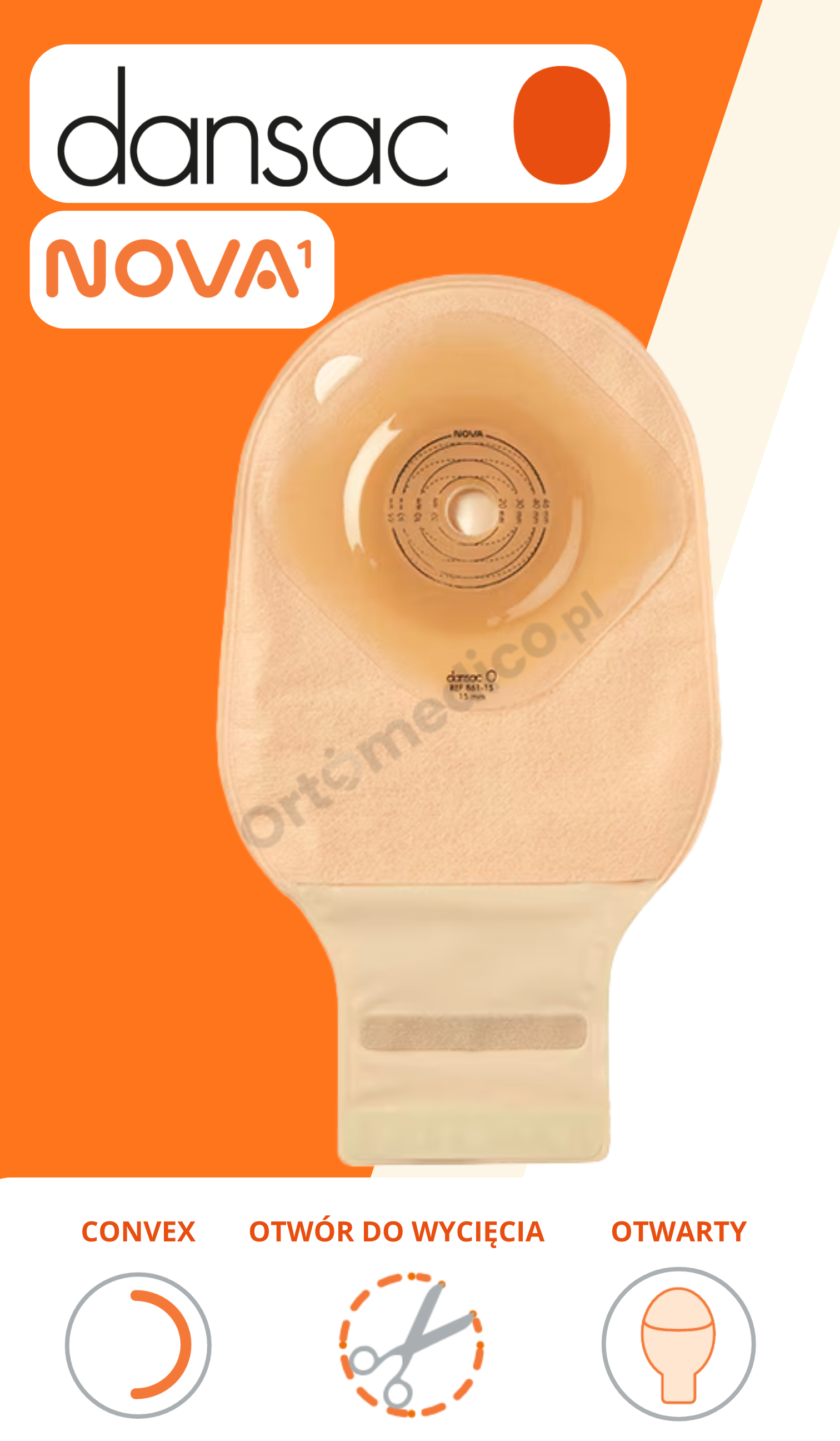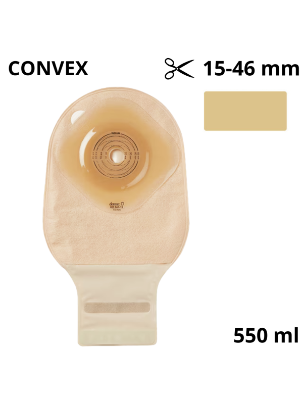Dansac Nova1 FoldUp 841-46 – worek stomijny otwarty z wypukłością Convex 6 mm | 15–46 mm | 550 ml | Beżowy