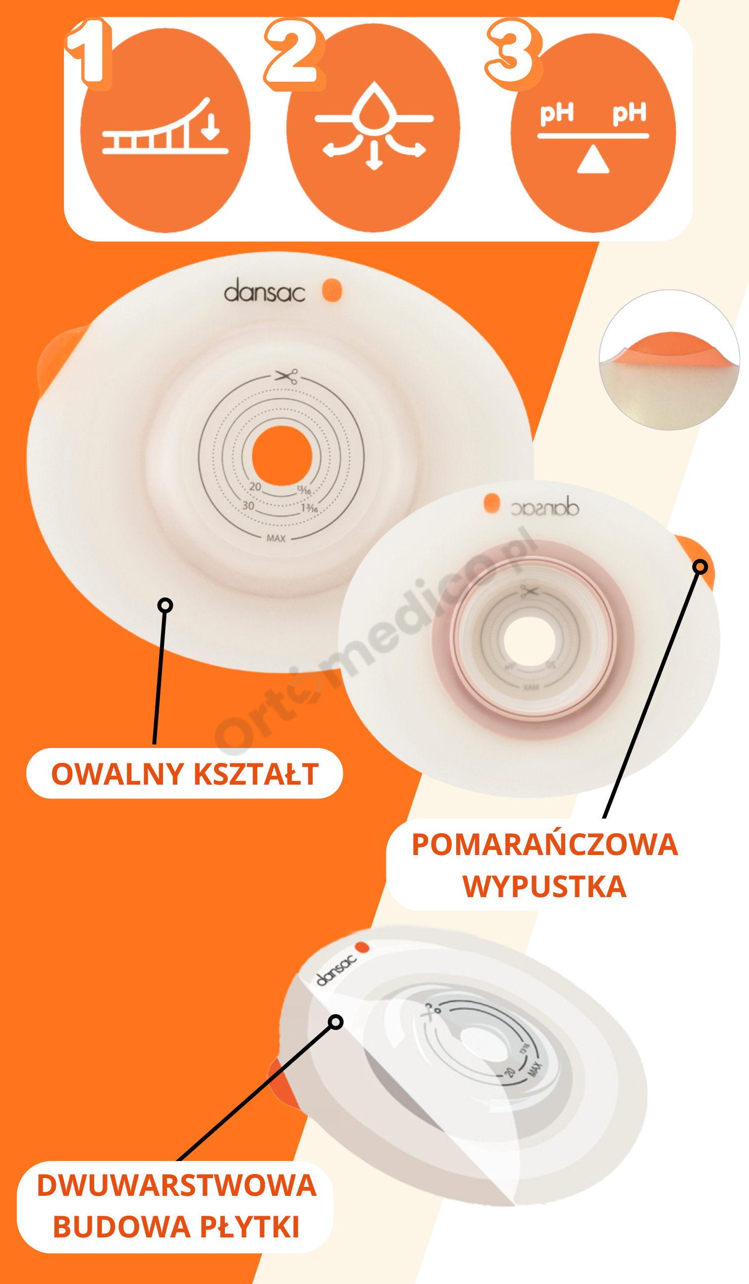 Elastyczna i delikatna powierzchnia przylepna zapewnia pewne uszczelnienie wokół stomii, chroniąc skórę przed kontaktem z treścią jelitową. Ułatwia też bezbolesne i bezpieczne zdejmowanie płytki.