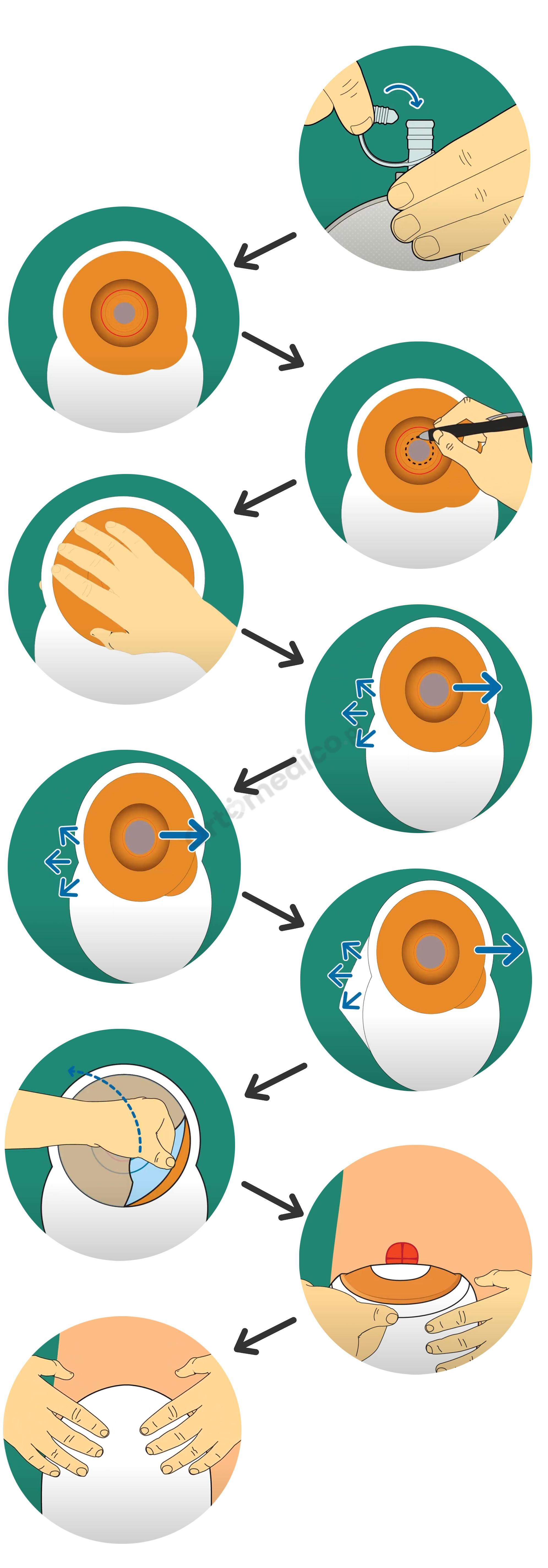 - Dopasowanie średnicy własnej stomii - wycinanie
