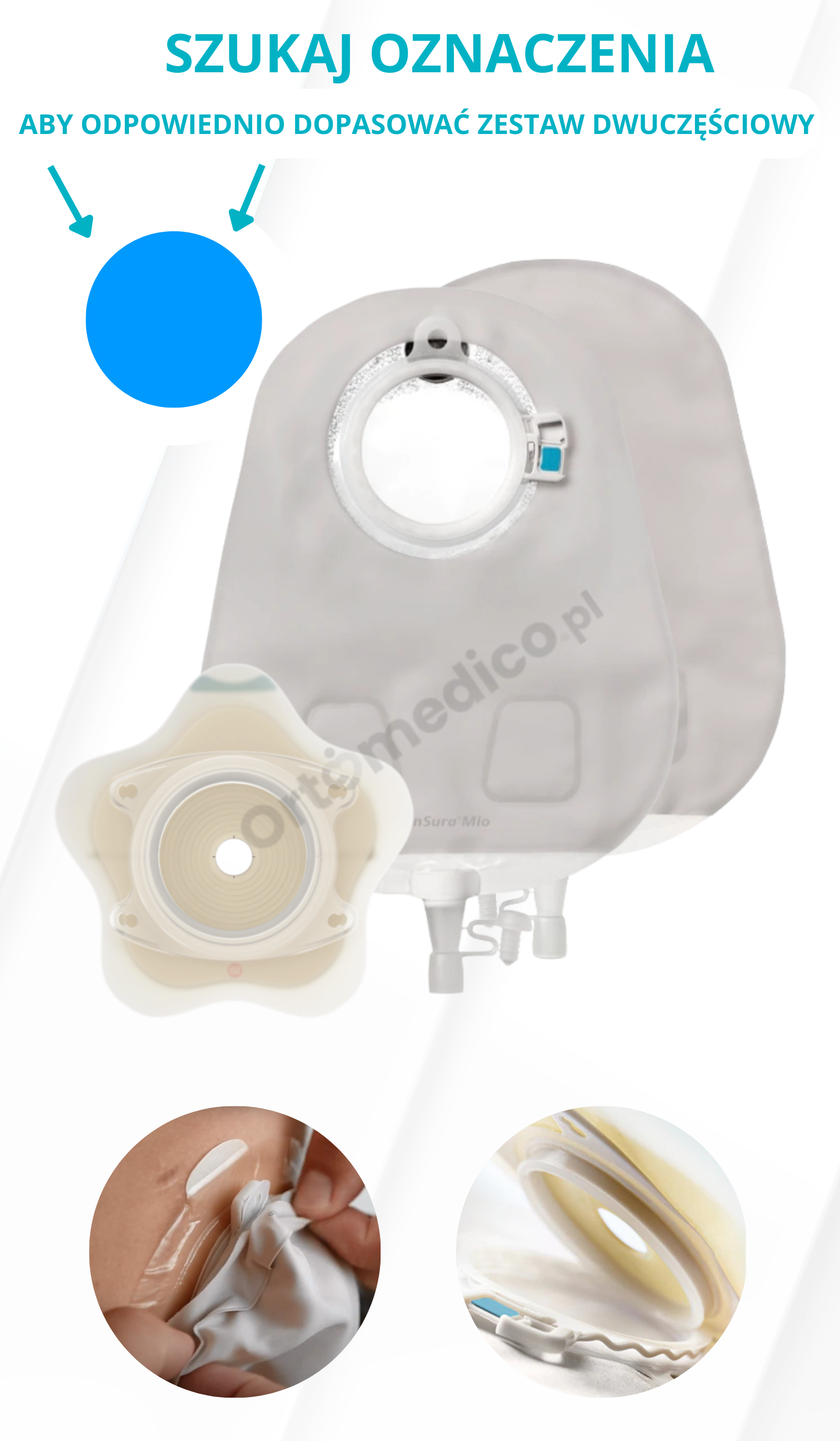 - Odpowiedni dla pacjentów wymagających systemu 2-częściowego, w którym płytka może być stosowana wielokrotnie, a worek wymieniany częściej.