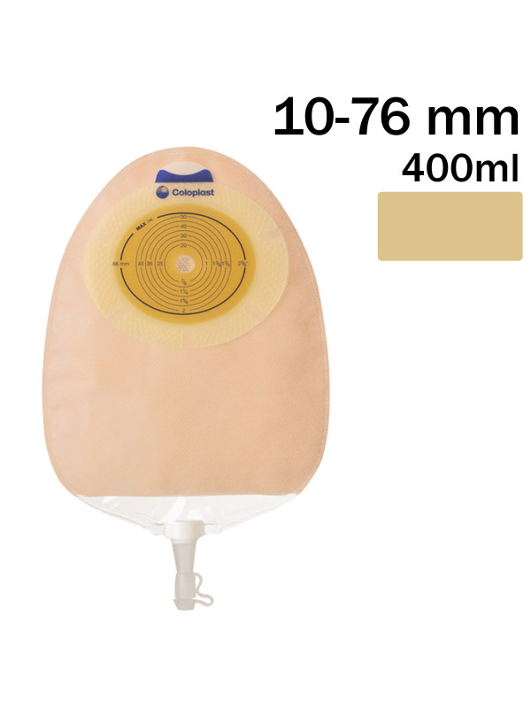 118020 Worek Urostomijny 1-częściowy SenSura 10–76 mm, 400 ml, Maxi, Cielisty – Coloplast