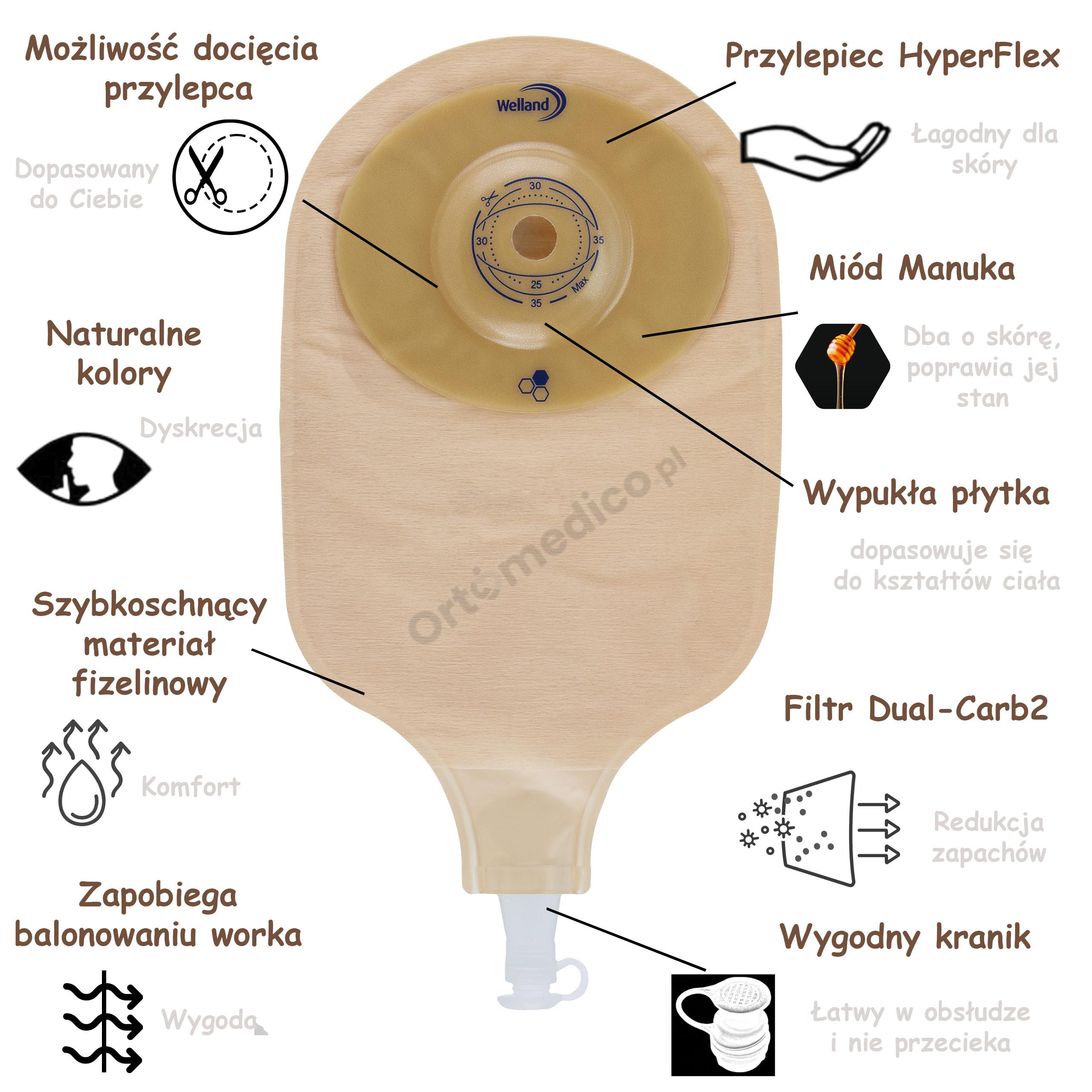 - Dopasowany do Ciebie / do Twoich potrzeb - możliwość dobrania idealnego rozmiaru worka i przylepca, zapewniająca idealne przyleganie i ochronę.