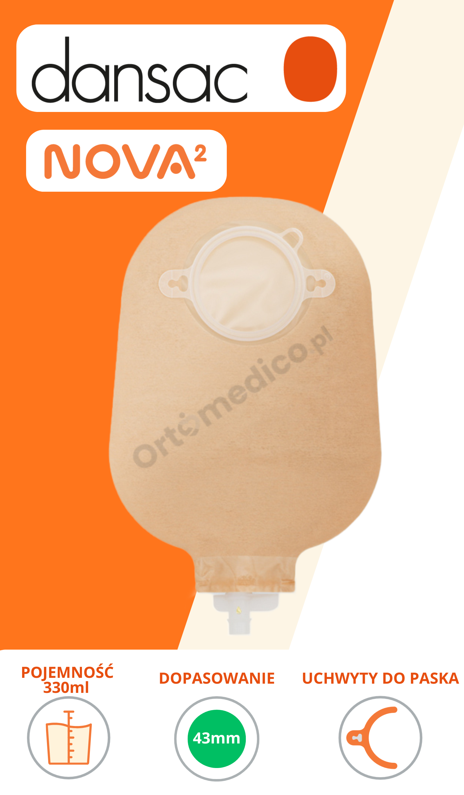 Worek urostomijny Dansac Nova 2 Uro 1217-43 to część nowoczesnego dwuczęściowego systemu stomijnego, stworzonego specjalnie z myślą o osobach żyjących z urostomią. Dzięki innowacyjnym rozwiązaniom, takim jak zawór zwrotny chroniący przed cofaniem się moczu, intuicyjny system opróżniania oraz trójwarstwowy materiał fizelinowy, produkt gwarantuje nie tylko skuteczność, ale i maksymalny komfort użytkowania – zarówno w dzień, jak i w nocy.