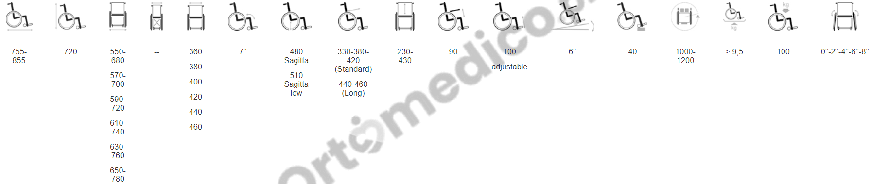 całkowita szerokość: 550-680, 570-700, 590-720,610-740,630-760,650-780mm