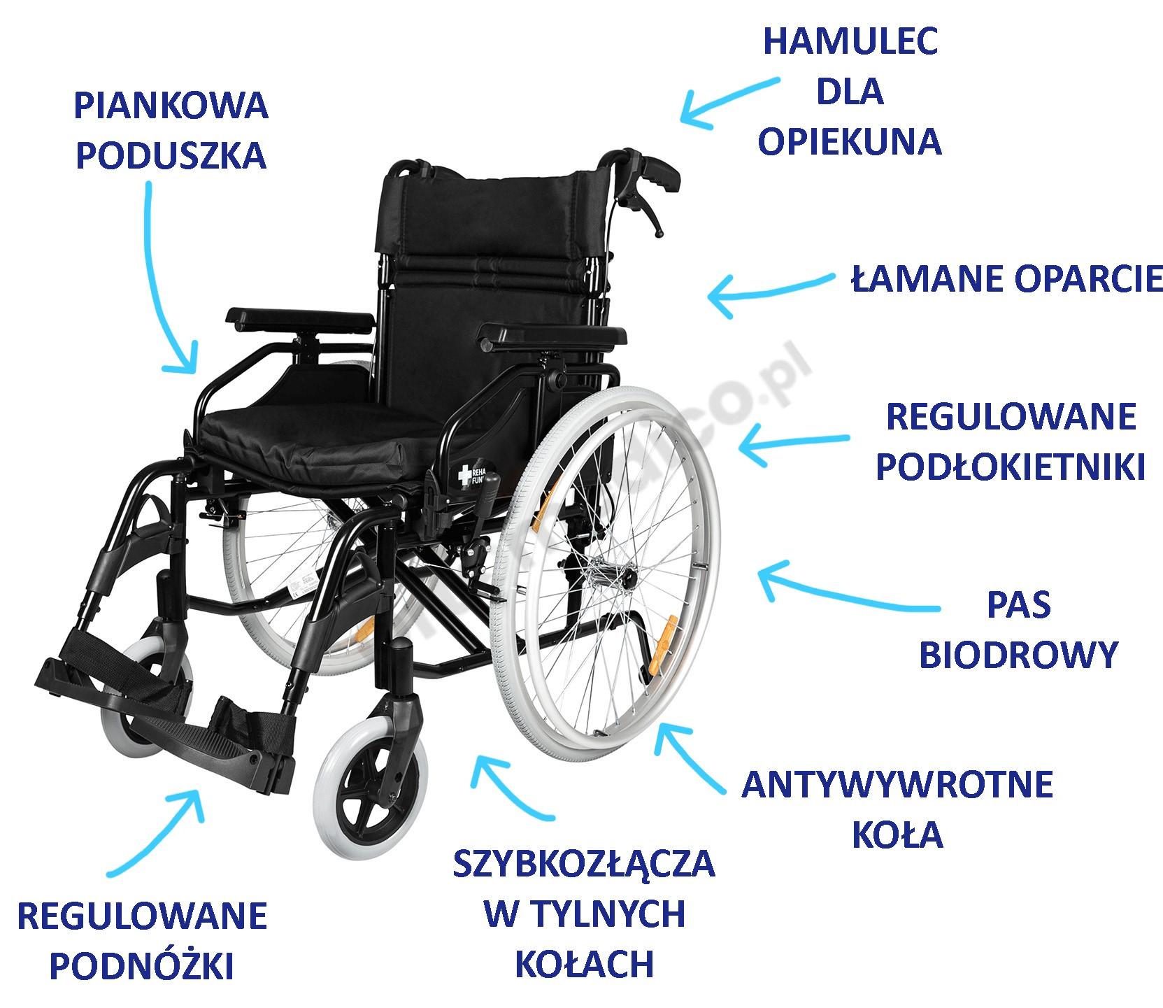 • Hamulce dla opiekuna: Umożliwiają kontrolę wózka i zapewniają dodatkowe bezpieczeństwo.