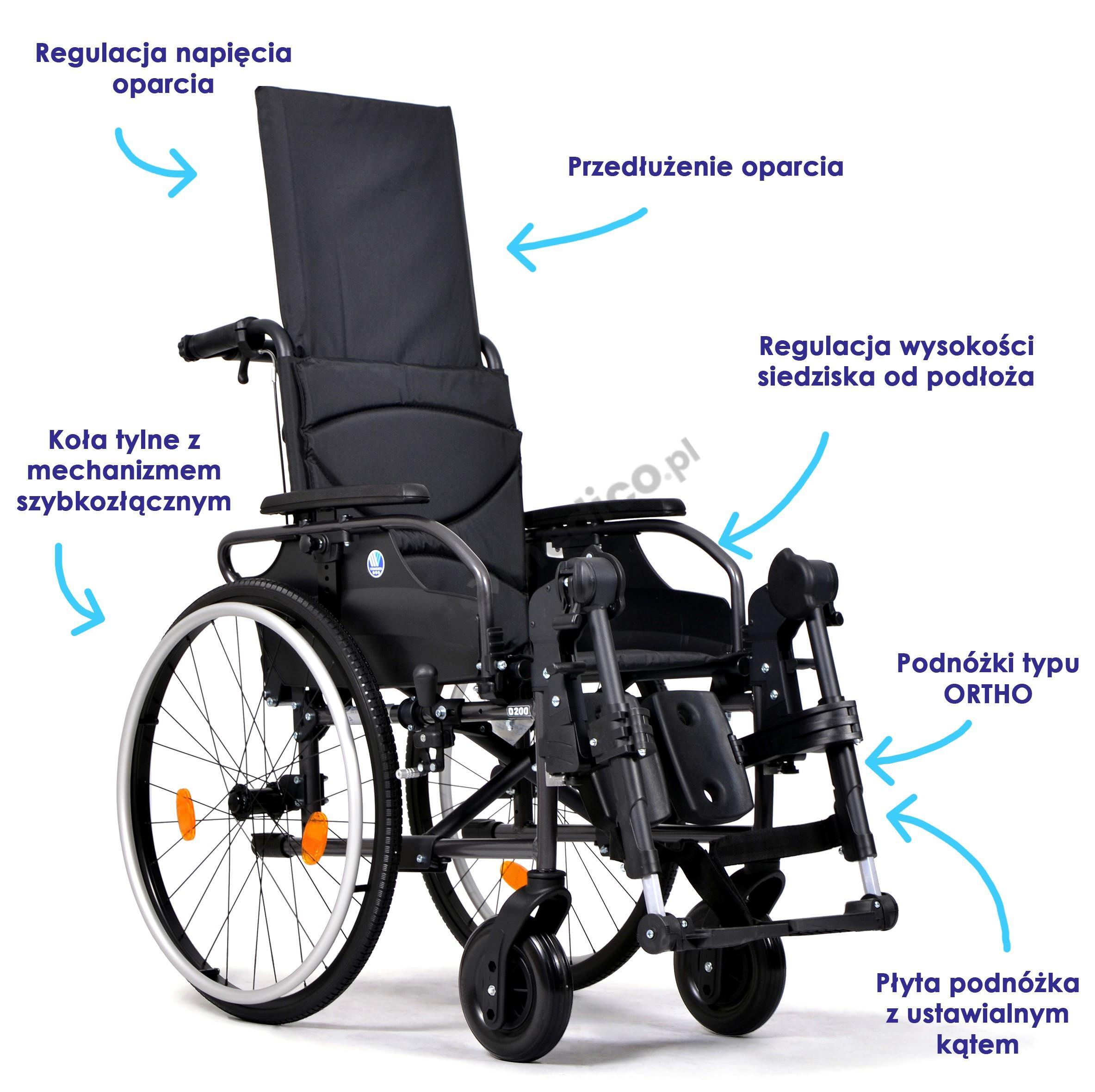 Specjalny wózek inwalidzki D200 30 wykonany z aluminium, bardzo dobrze spełnia funkcje stabilizacji zarówno pleców i jak i głowy, polecany głównie dla osób z towarzyszącym paraliżem oraz objawami niestabilnego tułowia, ludziom po udarach lub z niedowładem kończyn. Wózek posiada elementy z regulacją danych parametrów, w szczególności przydatną funkcją jest oparcie z możliwością odchylania do 30°. Wózek specjalny D200 30 posiada opcję złożenia oparcia na przednie ramie, co ułatwia jego transport i znacznie zmniejsza gabaryty, jesteśmy w stanie zapakować wózek do bagażnika auta. Model D200 30 został wykonany w eleganckiej czarnej tonacji, która wpasowuje się do panujących trendów.