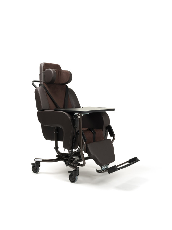 Specjalny wózek pielęgnacyjny Altitude polecany jest dla starszych osób, które mają problem z korzystaniem ze standardowego wózka inwalidzkiego. Model jest komfortowy, bardzo dobrze stabilizuje głowę oraz plecy użytkownika. Klient sam wybiera kolor wygodnej tapicerki stworzonej z różnego typu materiałów, wszystko zależy od własnych wymagań. Fotel został wyposażony w siedzisko i oparcie z płynną regulacją kąta nachylenia odbywającą się za pomocą hydraulicznych siłowników. Pas chroniący przed wypadnięciem, podnóżki z osłonkami oraz zagłówek odpowiednio zadbają o bezpieczeństwo. Już w wyposażeniu standardowym fotela Altitude znajdziemy wiele przydatnych elementów i funkcji takich jak: terapeutyczny stolik drewniany o półokrągłym wycięciu z funkcją odchylania na boki oraz demontażu, fotel posiada również obrotowe kółka przeznaczone do łatwego transportu np. między pokojami.