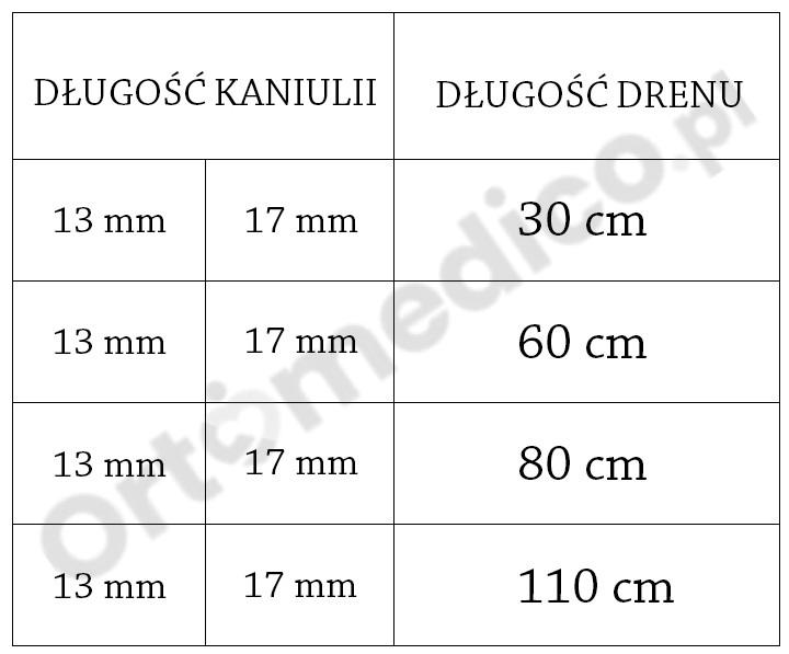 1. miękką, teflonową kaniulę o długości 13 i 17 mm